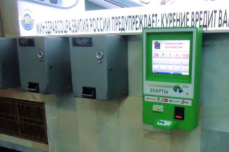 Первоначально такие терминалы были установлены только в переходах всех станций метрополитена, теперь же терминалы экспресс – оплаты для пополнения ЕКАРТЫ смонтированы непосредственно в кассовых залах станций. Их легко можно заметить по ярко изумрудному цвету и оригинальной символике ЕКАРТЫ.